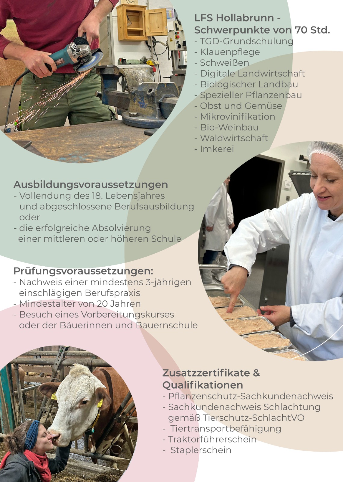 BetriebsführerInnen oder zukünftige ÜbernehmerInnen, die bisher keine Möglichkeit einer landwirtschaftlichen bzw. weinbaulichen – kellerwirtschaftlichen Grundausbildung hatten und das zur Betriebsführung notwendige Wissen nachholen und mit einer Facharbeiterprüfung abschließen möchten.